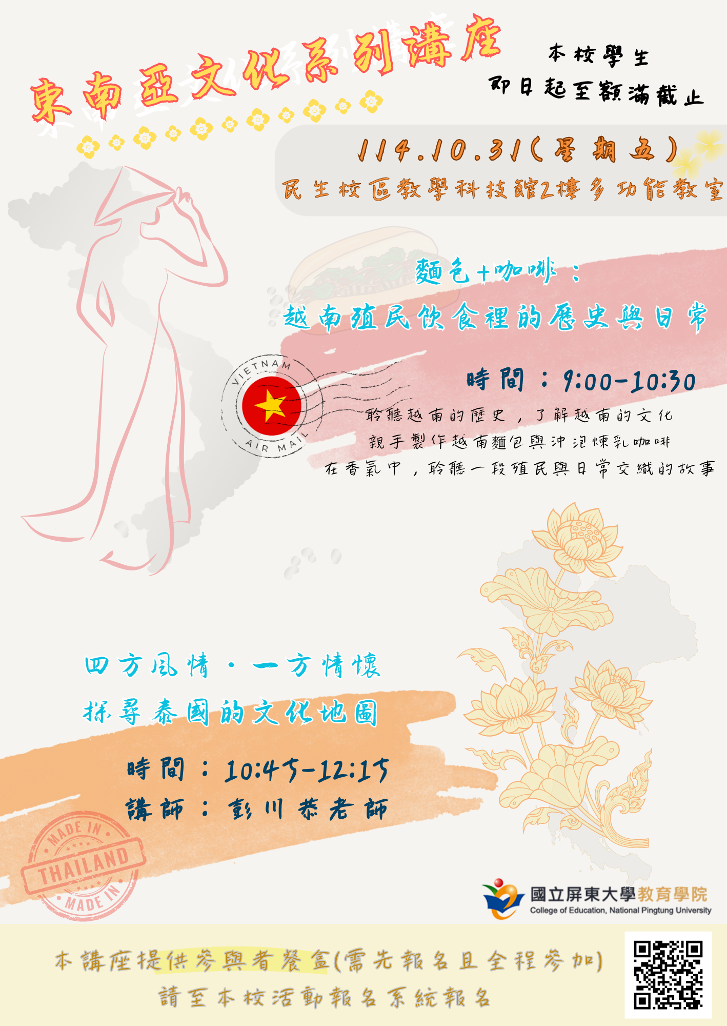 【講座】東南亞文化系列講座(10月31日,9:00-12:15)