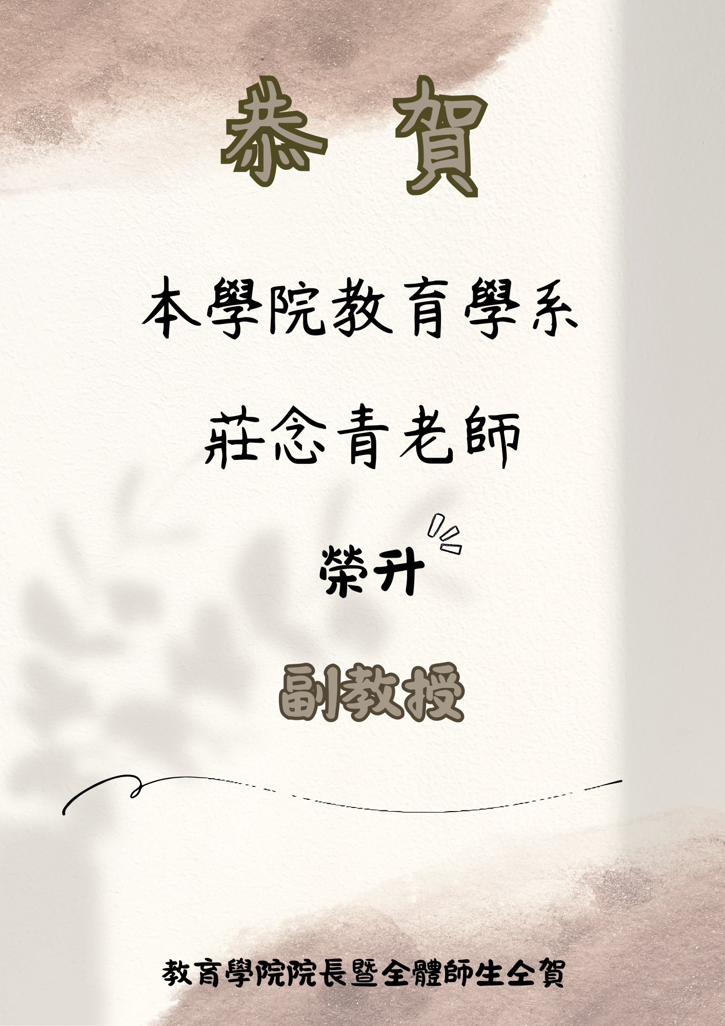 恭賀!本學院教育學系莊念青老師榮升副教授!